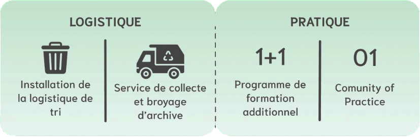 L’entreprise disposera de sa propre logistique de tri afin de permettre aux collaborateurs de pratiquer les fondements recus en cours de formation.